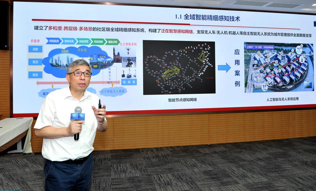 此次双方联合发布了七项人工智能研究成果,涉及自主智能无人系统全域精细感知技术、高实时一屏集控数字孪生管理系统、城市运行重大风险防范与应急管理体系框架等,为防疫、应急、设施运维等城市运行领域再添助力。今年4月以来,同济大学与上海市城运中心在政产学研用等领域全面合作,集合专业管理和科研人才优势,聚焦城市运行重点领域,配置资源促进技术、服务、数据等要素的有效衔接,在促进城市运行管理的全面感知、自主协同、自动识别等方面取得新突破。如此次发布的重大公共卫生事件智能防控技术,在多目标、高精度多机器人协同下,实现了可视化系统、自然语音交互、多模识别技术、高精定位导航和自主控制的技术融合,发明了疫情生理特征多维融合快速感知技术,研发了异构自主协同疫情检测机器人,构建了重大疫情防控大数据示踪与传播预警模型,并提出了方舱医院集成建造与城市应急处置方法,这些技术的实战实践将进一步提升城市的防疫能力和水平。上海市应急局副局长杨晓东和市卫健委副主任赵丹丹说:“我们将和研究人员一道探讨推动这些新发明、新技术的落地实践,用更多人工智能手段来提升城市的应急和防疫水平。”