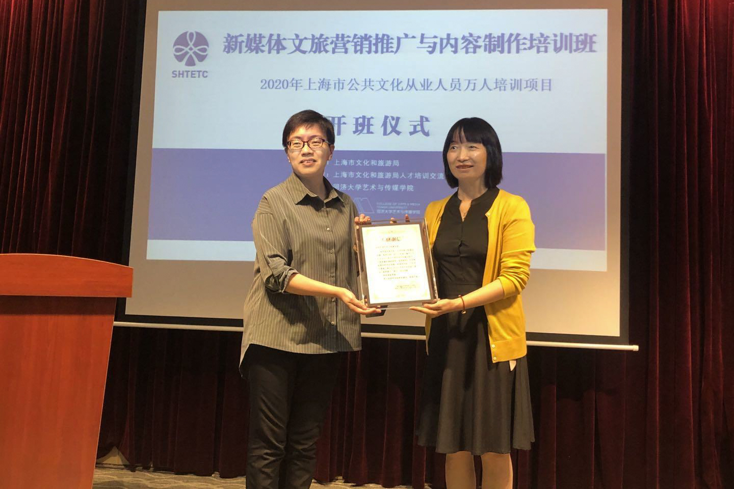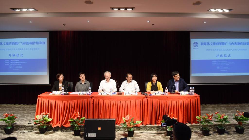 近日,由上海市文化和旅游局指导、市文旅局人才培训交流中心主办、我校艺术与传媒学院承办的2020年新媒体文旅营销推广与内容制作培训班开班。这是2020年上海市公共文化从业人员万人培训项目的首期短训班,此次开班标志着2020年万人培训项目正式启动。上海市文化和旅游局一级巡视员王玮、我校副校长雷星晖出席开班式并致辞。市文旅局公共服务处、市文旅局培训中心、我校艺术与传媒学院相关负责人和来自全市各级公共文化岗位的45名学员参加了开班式。