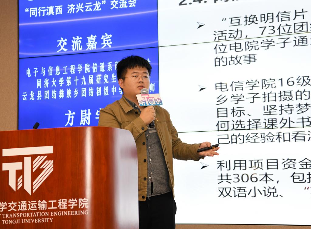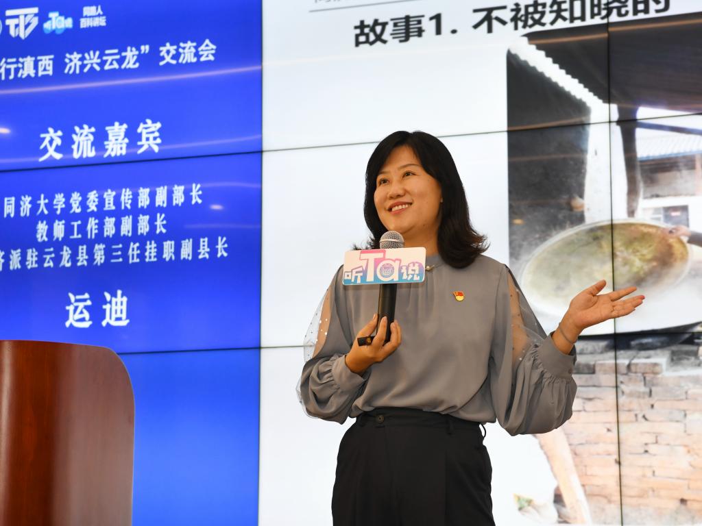随后,同济大学派驻云龙县的挂职副县长运迪、陈长、周晔,驻村第一书记郑彧豪、刘一呈、孙羽捷,以及支教团的研究生代表们,分别介绍了在云龙开展工作的经历,回顾云龙县脱贫摘帽历程,分享校地帮扶故事。