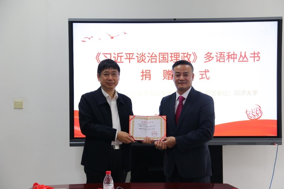 余富文表示,《习近平谈治国理政》一书是国际社会了解当代中国的重要窗口,本次捐赠系列丛书,可用于同济师生学习总书记治国理政新理念新思想新战略,并期待在“一带一路”国际合作人文交流项目中,双方共同对外讲好中国故事。