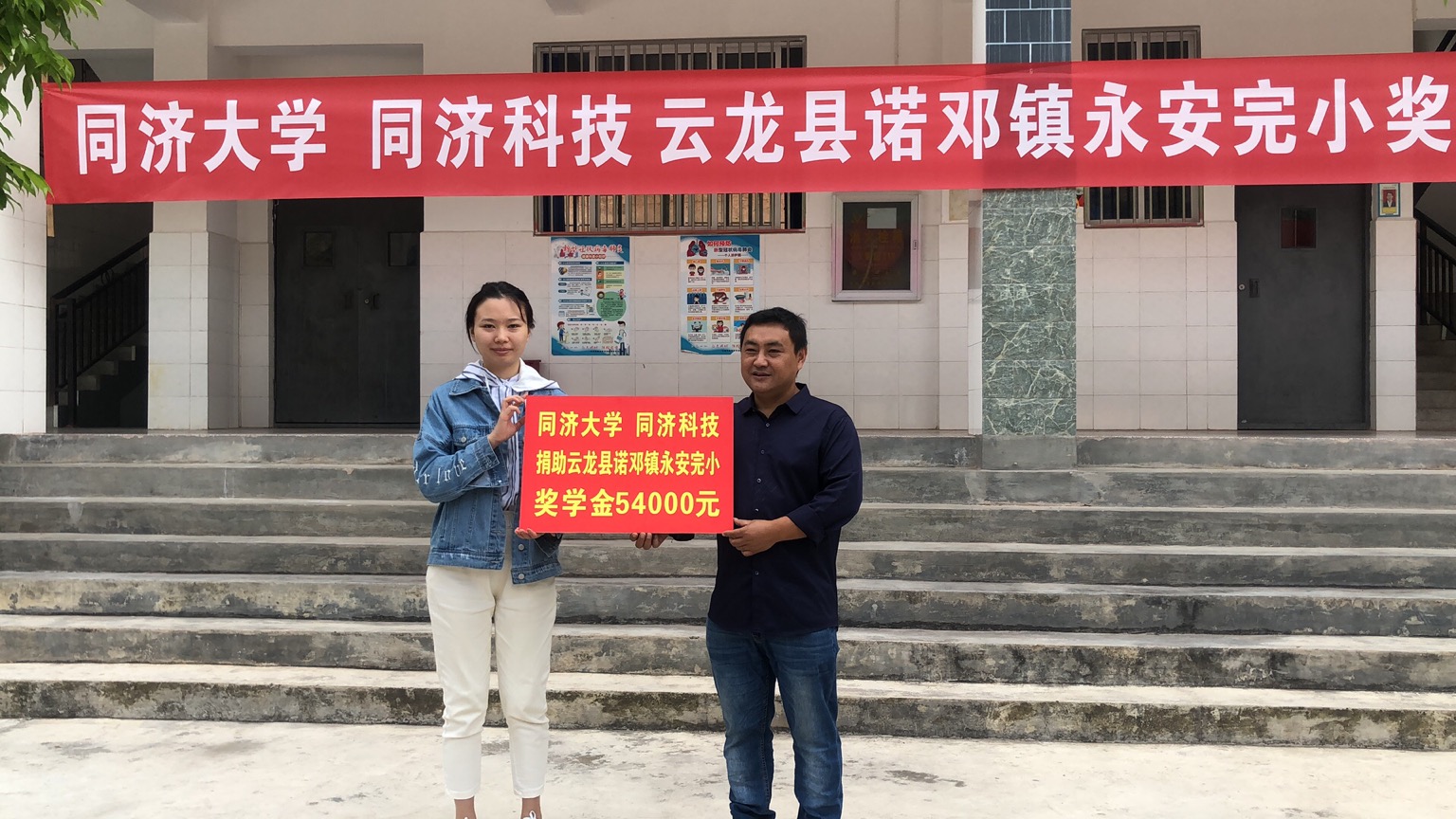 10月16日,在第七个国家扶贫日来临之际,同济大学机关教工第二十三支部(资产处、采招办、能源中心)和同济科技实业股份有限公司向云南省云龙县诺邓镇永安完小捐赠奖学金。捐赠仪式在云龙县永安完小举行,仪式由永安完小校长杨子龙主持,永安完小全体师生、我校挂职云龙县干部周晔、孙羽捷,以及我校部分代表等参加了捐赠仪式。