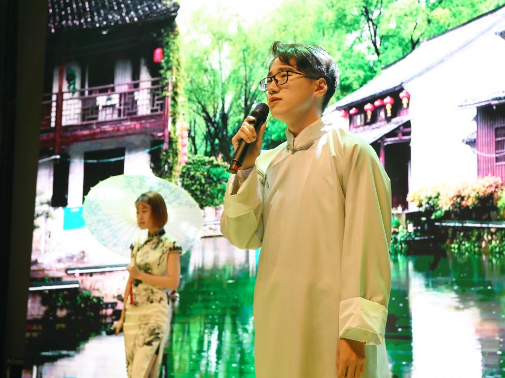 决赛现场,学生点墨轩书画社、古琴社带来了传统文化展示节目《琴音墨香》,学生代表带来了原创说唱音乐《那一首诗》和原创诗朗诵《雨知道》《青年人》,展示了同济学子在传统文化领域的才华和创意。