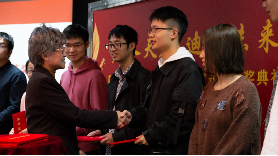 颁奖典礼上,校组织部副部长王峻宣读了2018-2019学年启迪奖学金获奖名单。经层层选拔,共有9名电信学子获2019年度启迪奖学金。吴启迪为获奖学生颁发启迪奖学金证书并合影留念。