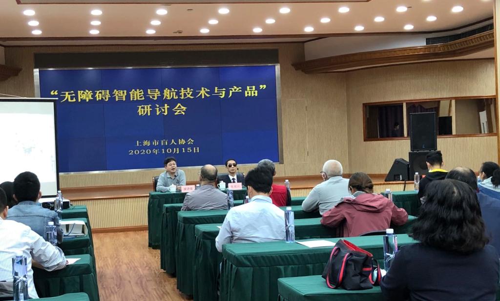 上海市盲协主席赵继红到会致辞,市盲协副主席朱双六主持。来自全市各区的盲人代表、上海市政府网站无障碍体验员、专家学者、科研人员、公益人士等参会,了解视障残疾人用户的实际需求,共同探讨无障碍智能导航技术与智能辅助用品的最新进展。