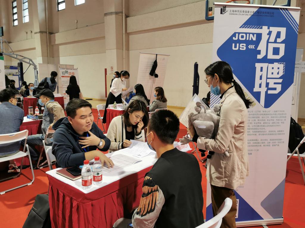 10月25日,为期两天的同济大学2021届毕业生校园综合招聘会(四平校区专场)在新体育馆落下帷幕。两天内共有157家用人单位入驻现场,吸引我校1200余人次学生前来应聘。至此,本月,我校学生就业指导中心联合交通运输工程学院、电子与信息工程学院、环境科学与工程学院、汽车学院等部分学院,通过线上与线下相结合、跨校区、多场次、分类型的方式已累计举办面向2021届毕业生的8场综合招聘会。