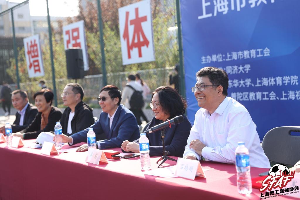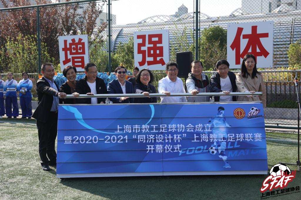 10月24日,上海市教工足球协会成立暨2020-2021“同济设计杯”上海教工足球联赛开幕仪式在四平路校区一二九运动场举行。上海市教育工会常务副主席(副巡视员)李蔚,我校副校长吕培明,上海市教育工会副主席吉启华,原国家队队员、申花队队长刘军,同济大学建筑设计研究院(集团)有限公司副总裁金炜等出席开幕式。