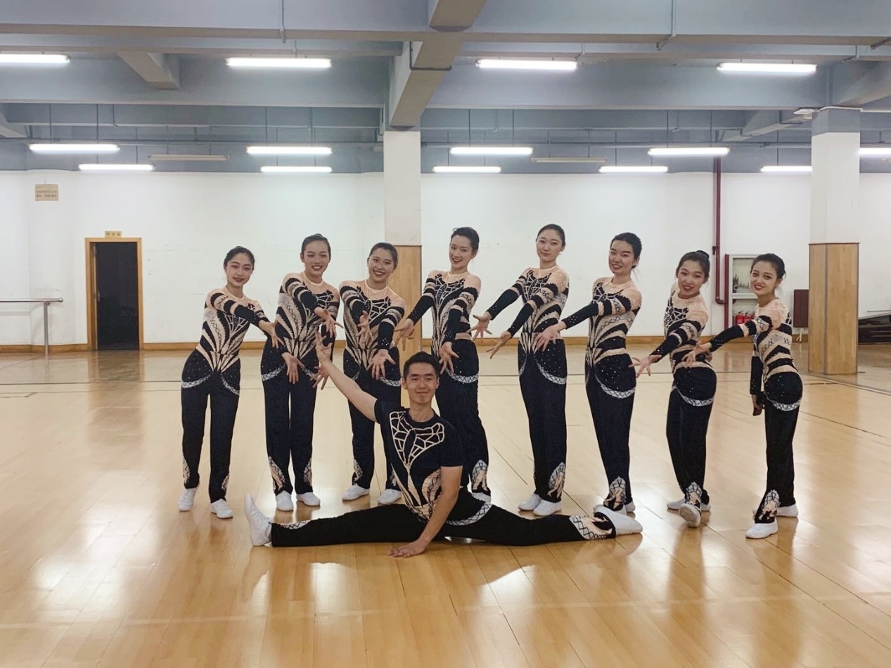 我校选派的9名学生参加了团体健身操8-12人组规定动作的比赛,他们以整齐划一的动作、具有创意的编排获得一致好评,荣获该竞赛项目高校组一等奖。