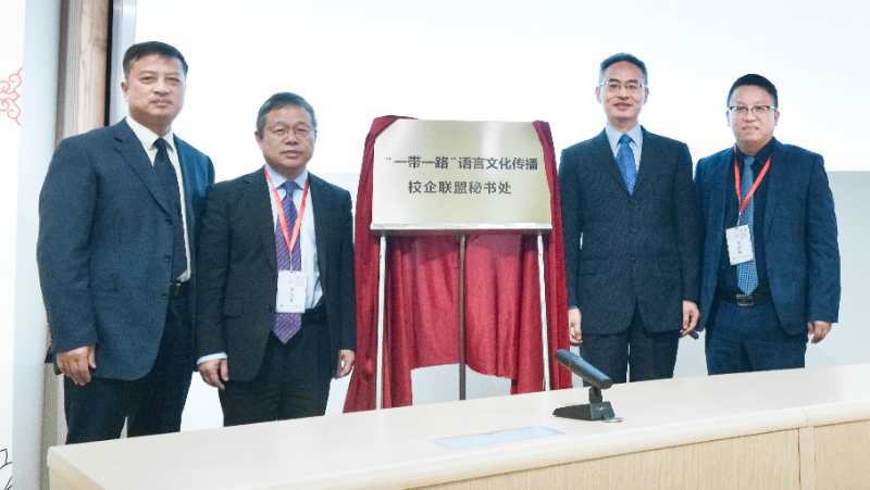 在开幕式上,“一带一路”语言文化传播校企联盟秘书处正式揭牌,理事会筹备会议举行。该联盟秘书处设在我校国际文化交流学院。