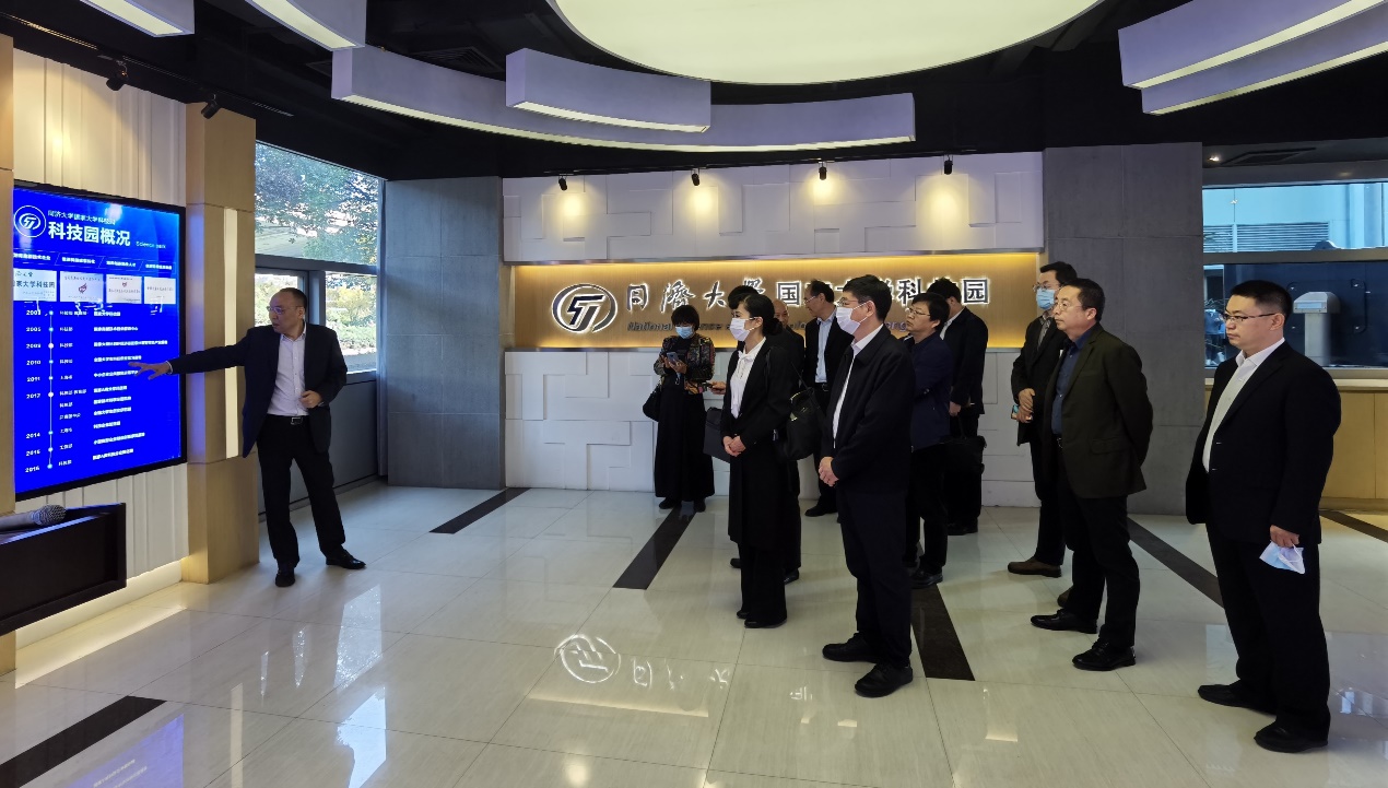 会前,刘惠一行参观了同济科技园展厅和创业企业众调科技,详细了解了同济科技园发展历程、特色运营模式、专业服务平台和技术成果转移转化等相关情况。