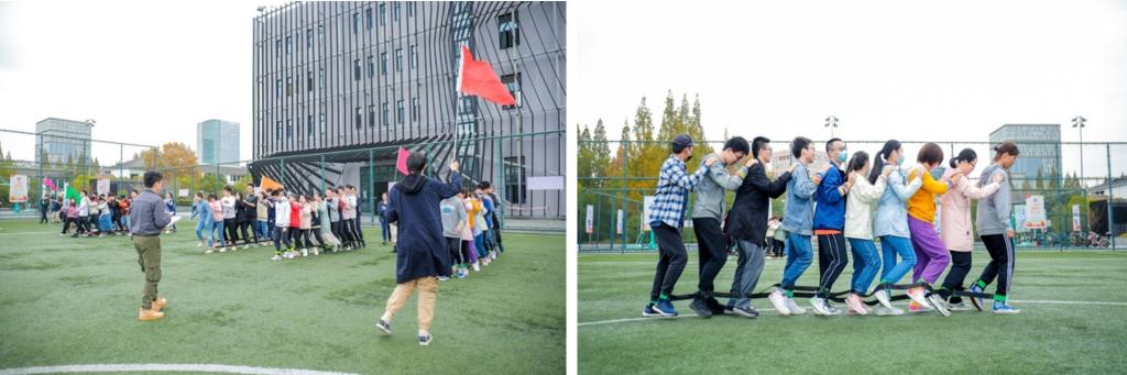 当天下午,参训心理委员在四平路校区足球场开展了团体凝聚力与沟通技能训练。(李文迪、钱钧)