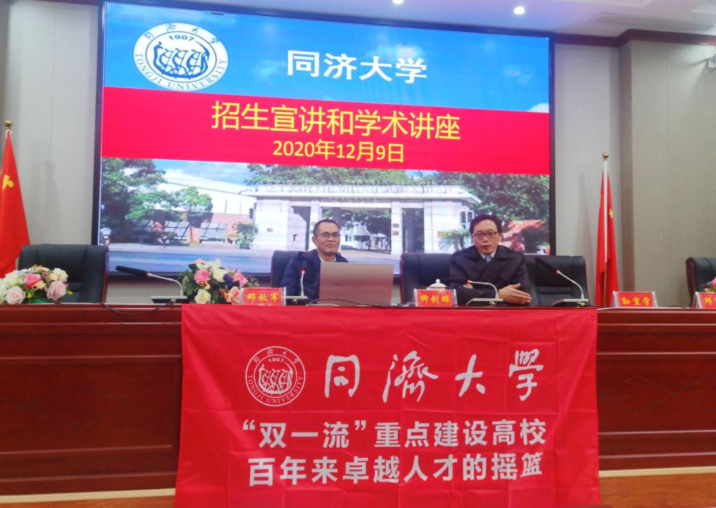 在万里大讲堂报告厅,我校本科生院副院长邓秋军介绍了学校本科人才培养体系改革举措和2021年招生政策。国际文化交流学院院长孙宜学介绍了学校国际化办学理念、特色和成果。环境科学与工程学院党委书记柳剑雄和环科系系主任邱宇平与现场高三学子进行了互动交流,解答了他们在大类选择和专业选择上的疑惑。学生们纷纷表示,通过面对面的沟通与交流,增进了对同济大学的了解,也对“同舟共济”的同济校训有了新的认识。