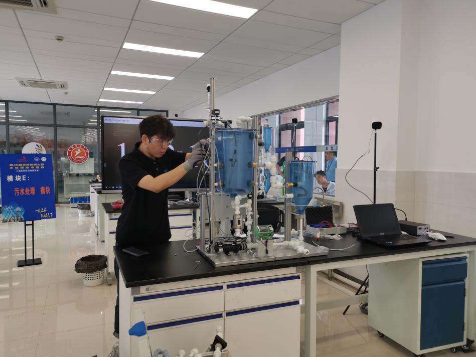 “水处理技术”项目是对城市或工业供水和废水处理系统进行管理、监控和维护的竞赛项目。比赛中对选手的技能要求主要包括:能够观察、识别、维护、控制和修理供水及废水处理系统的设备,以及拟定计划和报告等全部工作过程;具备力学、化学、生物、电气、自动化和环境保护方面的知识和专长;能够根据技术文件和规章以及法律要求独立开展工作,并采取措施确保工作中的质量保证、安全、健康和环境保护。