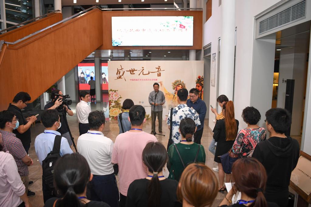 中国昆曲博物馆代表陆静表示,昆曲是中国古代民族文化的“百科全书”,是中国特定历史社会形态的“活化石”,是实至名归的“人类口述和非物质遗产代表作”。希望青年学生们通过这个展览,进一步了解中国戏曲艺术的伟大成就,从而更好地传承中国优秀的传统文化。