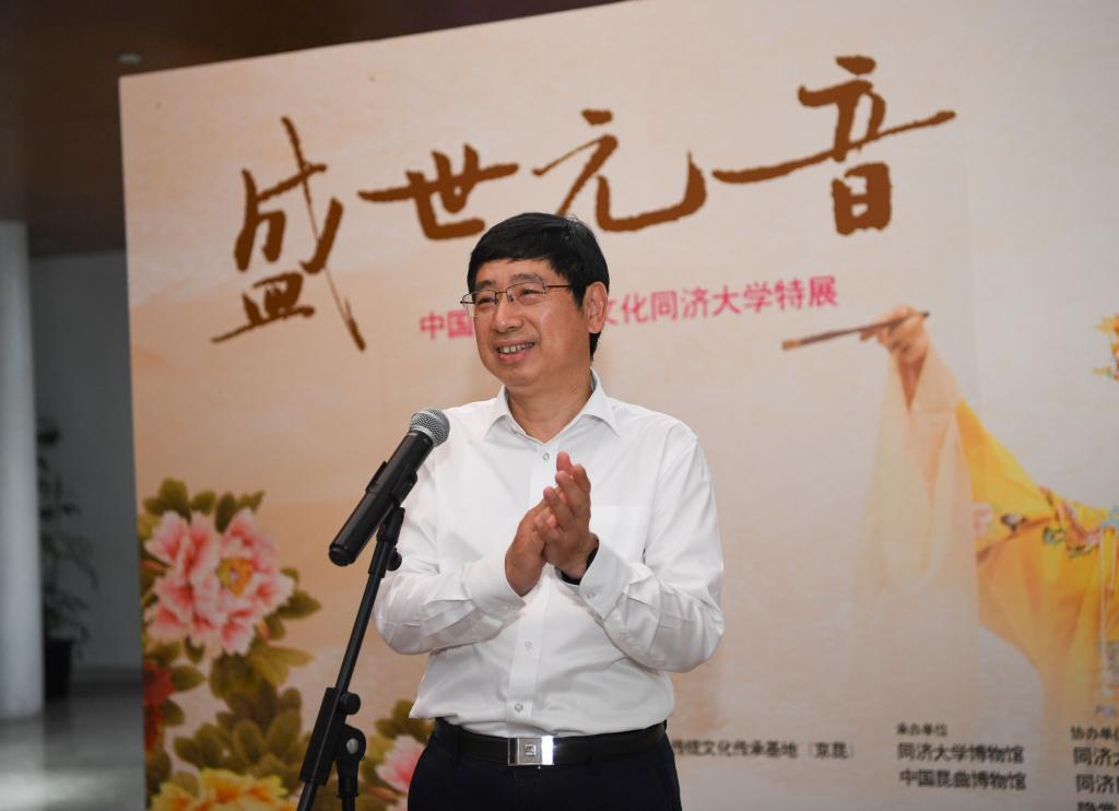 由教育部中华优秀传统文化传承基地(京昆)和江苏省文物局主办,同济大学博物馆和中国昆曲博物馆承办,同济大学人文学院、同济昆曲研习社、同济大学文榷堂、同济大学沪西校区图书馆和隐堂(郑培凯)工作室协办的“盛世元音——中国昆曲艺术文化同济大学特展”开幕式5月15日晚间在博物馆举行,校党委副书记吴广明出席开幕式,并宣布展览开幕。