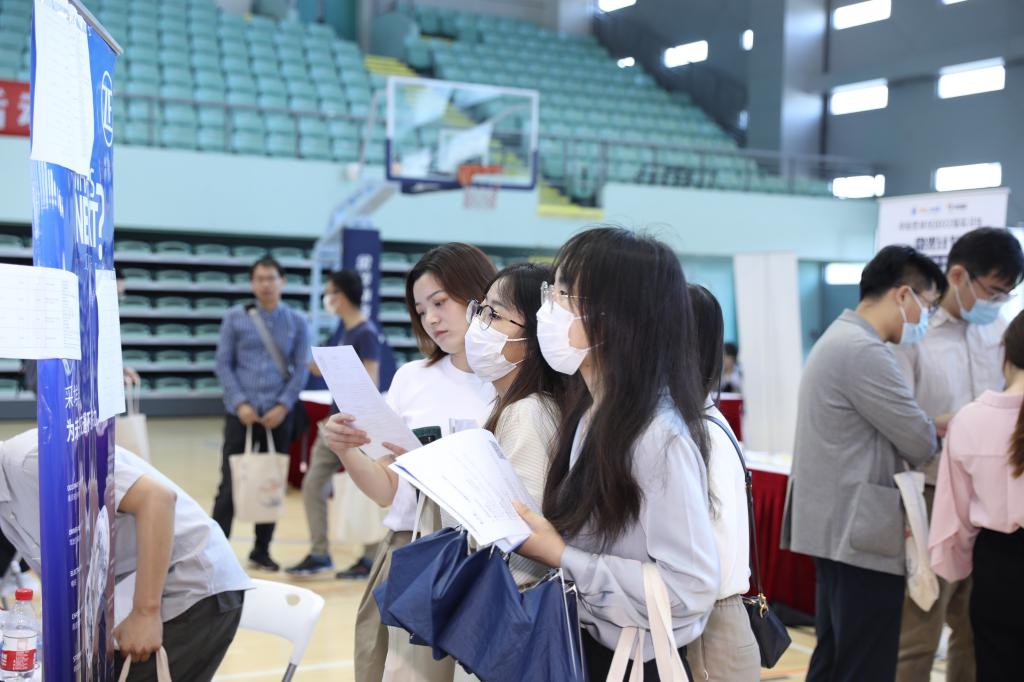 在就业实习招聘会区域,各用人单位摊位前排起了长队。为提升毕业生的求职效率和就业质量,助力毕业生与用人单位实现精准对接,学生就业指导中心在此次招聘会中实行定向邀约制。按照“国家需要、学校引导、学生期望”的原则,学校共邀请上汽集团、京东方、中国商飞等55家单位来校开展2021届毕业生求职招聘和2022届毕业生实习招录。来校单位的行业类型涵盖智能制造、信息技术、互联网服务等多个领域,提供岗位1300余个。