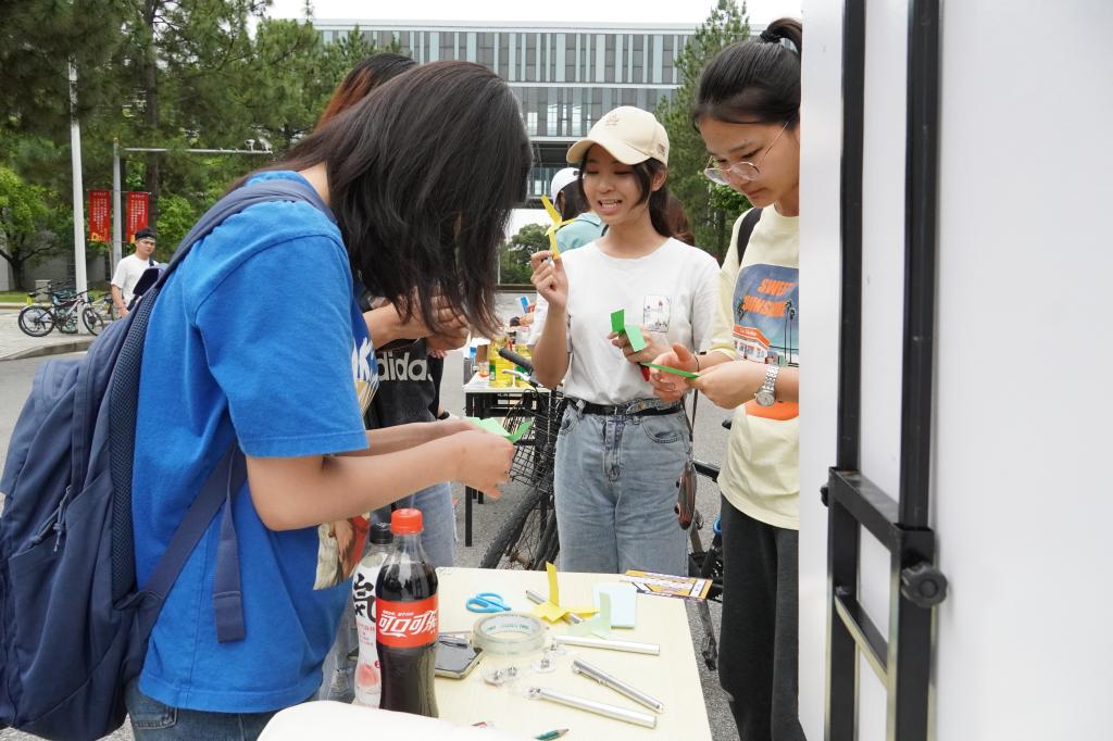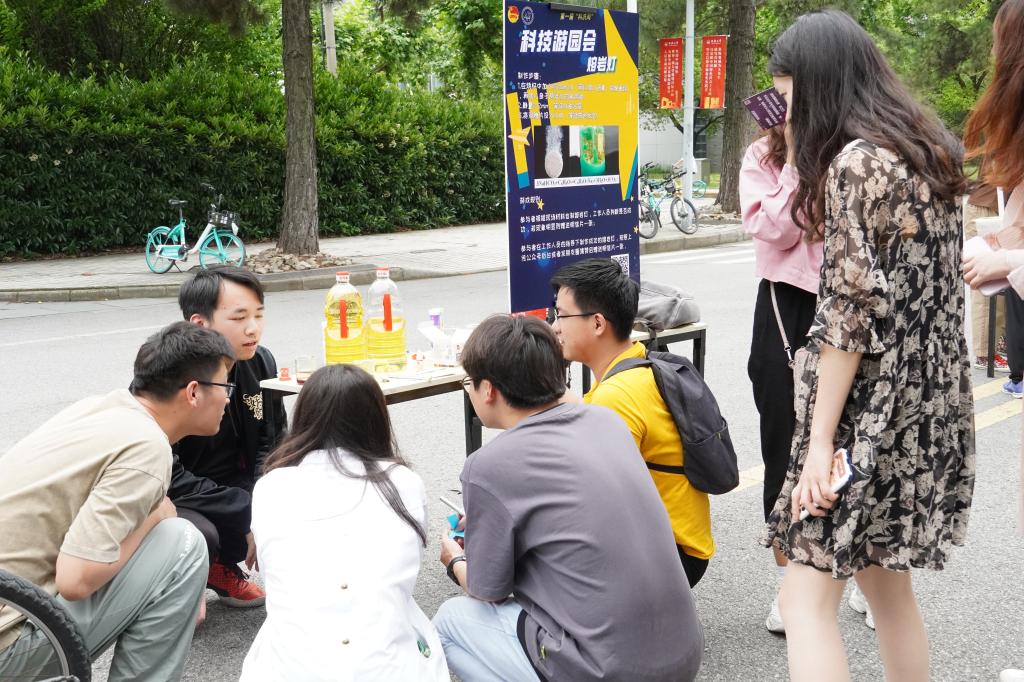 5月28日中午,由校团委主办、学生科学技术协会承办的科技游园会在嘉定校区举行。此次活动以“漫步浩瀚科学之海,触摸璀璨真理之星”为主题,来自多个学院的优秀科创团队现场进行了成果展示,学生科协还精心设计了多个科普互动游戏,带领大家完成科普小实验,将科技融入生活,让学生在互动游戏中感受科技的魅力。300余名师生参与了活动。