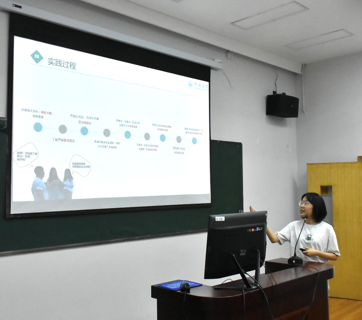 会上,环境科学与工程学院相关负责人介绍了学院在创新人才培养工作中的特色和目标愿景,希望同学们作为新时代同济环境人,要坚定理想信念,永远跟党走,服务国家战略,敢于争创一流。同济大学第十四届“学术先锋”获得者、环境科学与工程学院2017级博士生华煜和从学术研究、工作实践方面出发,与大家分享了科研经历和学习感受。同济大学2020年度“学术之星”获得者、学院2017级环境科学专业本科生刘勇锋将自己的创新创业、社会实践经历梳理成清晰的时间线,给同学们提供了启发性的思路。“知行杯”获奖团队代表尹晓庆介绍了团队开展的关于江苏省界牌镇厕所革命主题的暑期社会实践。环境科学与工程学院教师格日乐则以《心系万水千山,砥砺成长担当》为题作了大学生暑期社会实践动员。优秀团队学生代表张婧怡、徐之阳分享了各自的社会实践经历。