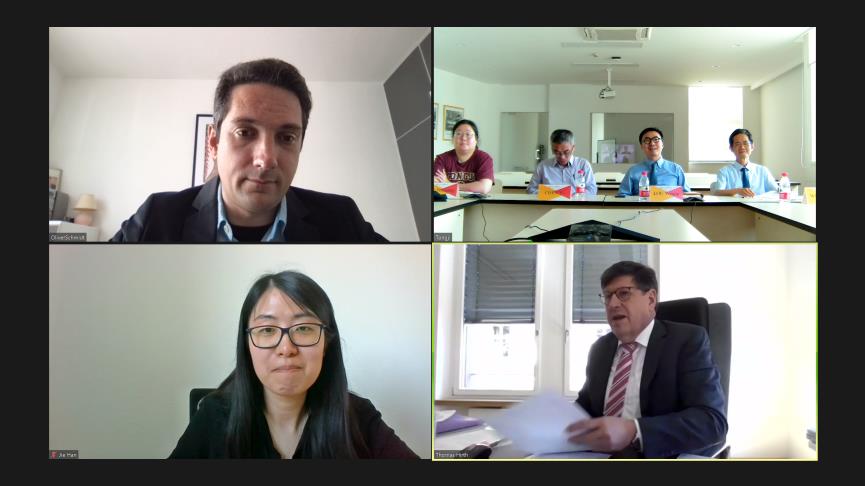 5月31日,副校长娄永琪与德国卡尔斯鲁厄理工大学(Karlsruhe Institute of Technology)副校长托马斯·赫尔特(Thomas Hirth)在线召开合作讨论会。我校中德学院、外事办公室代表参加会议。