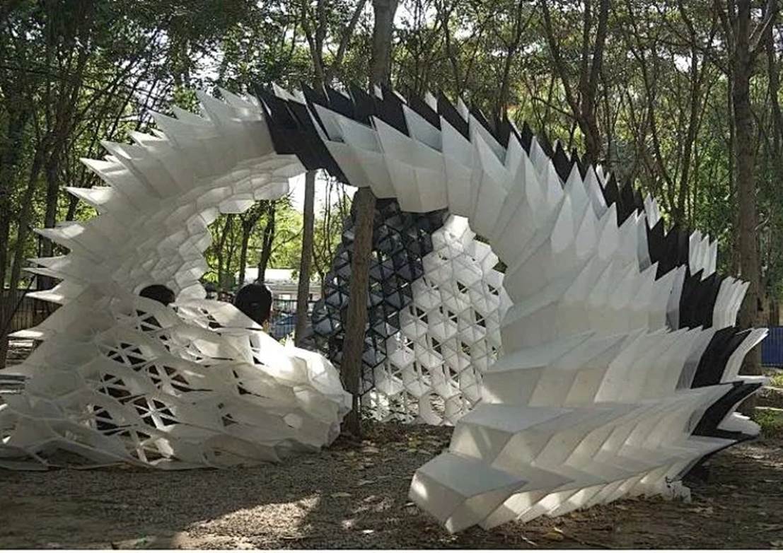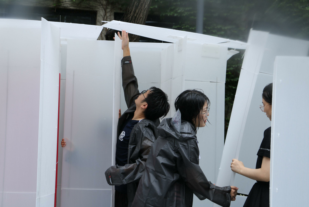 近日,同济大学和其他国内外建筑院校的一年级学生分别在上海、北京、南京、天津、广州、哈尔滨、重庆、西安、长沙、大连、沈阳、深圳、合肥、昆明、长春、嘉兴,以及韩国釜山各自的校园里,用塑料中空板建造了33栋房子。这便是时隔一年后重启的2021同济大学国际建造节暨2021“风语筑”塑料中空板建筑设计与建造竞赛。