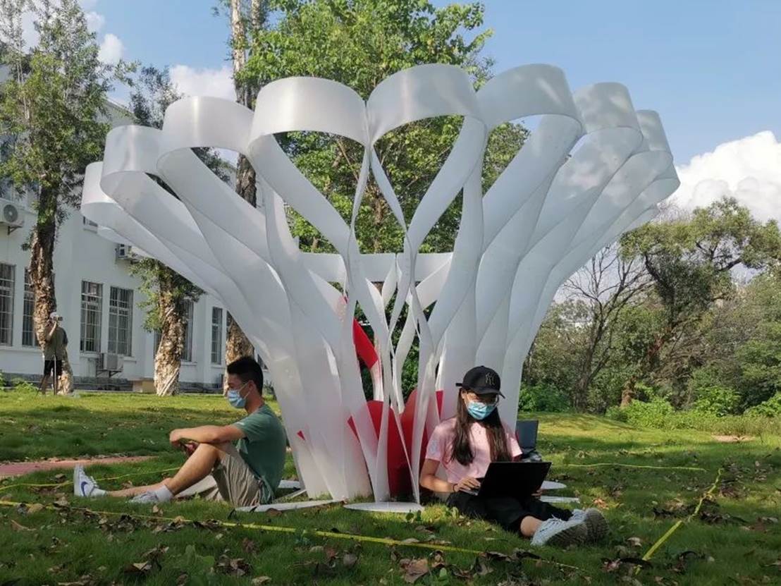 本届建造节的主题“亲密与疏离”也与对疫情的关注和思考有关。新冠肺炎疫情给全世界人民的生活带来了巨大影响,保持安全的“社交距离”是人们防疫抗疫的有效手段之一,但另一方面,人类对彼此间的情感交流有着天然的需求和渴望。如何平衡“亲密”与“疏离”两者之间的关系,以建构一组至少满足3至4人同时共享的既安全、又可用于交流的友好空间,成为队员们面临的建造挑战。最终,天津大学、华南理工大学、西安建筑科技大学荣获此次竞赛一等奖。