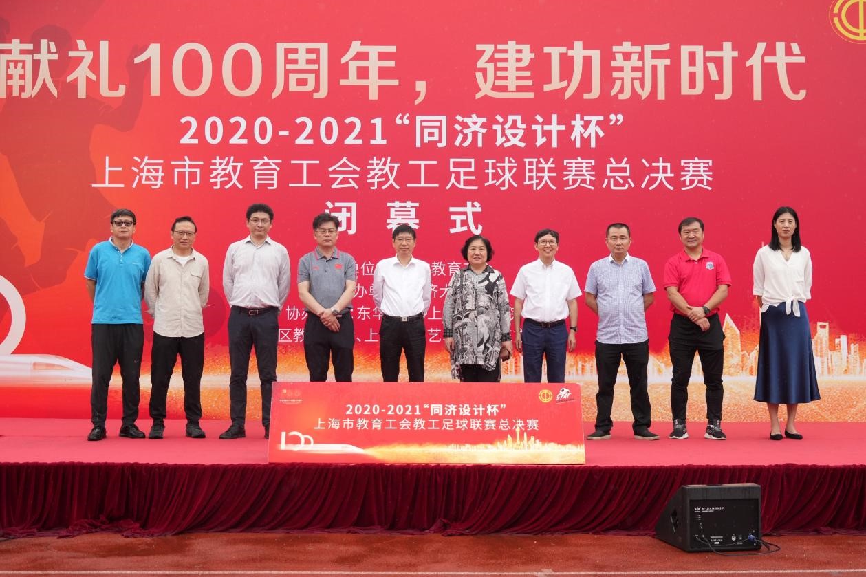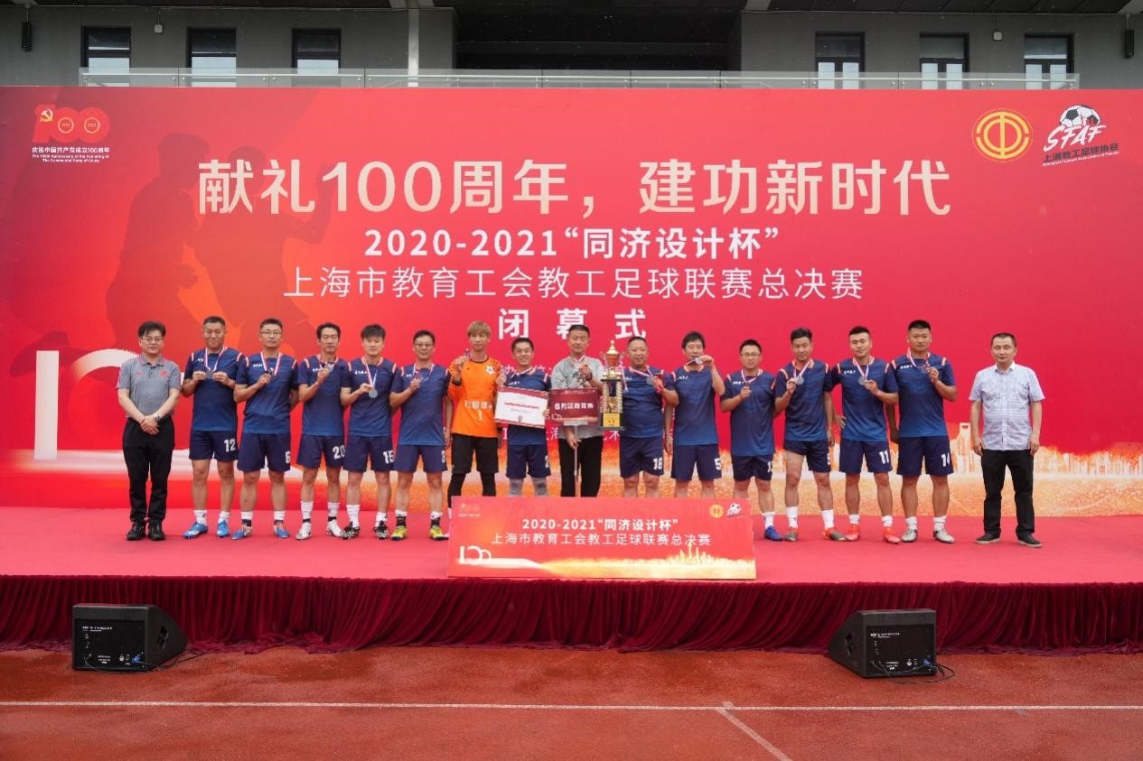 6月19日,由上海市教育工会主办,同济大学承办的“献礼100周年,建功新时代”2020-2021“同济设计杯”上海市教育工会教工足球联赛总决赛闭幕式在校举行。上海市教育工会常务副主席李蔚,上海市教育工会副主席吉启华,校党委副书记、工会主席吴广明,上教足协副理事长费志光,上海交通大学工会负责人,校工会、体育教学部负责人等出席颁奖仪式。