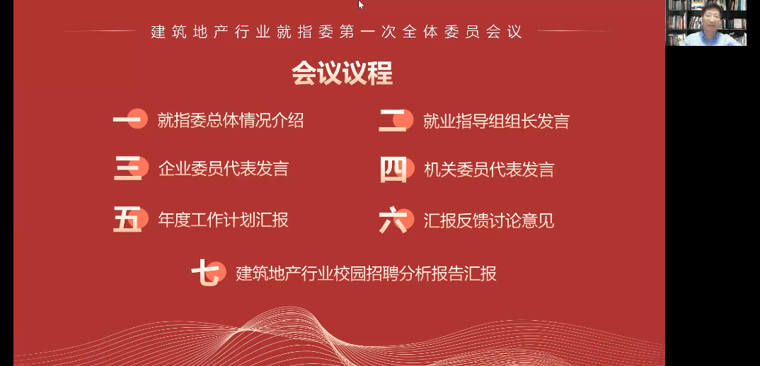 会上,张珂和李雄分别代表各自小组发言,表示将深入贯彻落实党中央、国务院关于高校毕业生就业工作的有关决策部署,在人才培养、校企联动、咨询指导等方面作出积极贡献。何志方、王玲作为政府机关、用人单位代表发言,表示将全力协同做好建筑地产行业就指委的有关工作,促进本行业高校毕业生就业大局稳定。建筑地产行业就指委秘书长、我校学生就业指导中心负责人对本行业就指委2021年度工作计划作了详细汇报。建筑类就业指导组秘书长、沈阳建筑大学招生就业处负责人,市政类就业指导组秘书长、北京林业大学招生就业处负责人分别汇报了各组委员对建筑地产行业就指委工作细则的修改建议和意见。北京网聘咨询有限公司校园及国际业务事业部负责人对建筑地产行业校园招聘的现状和趋势作了分析报告。