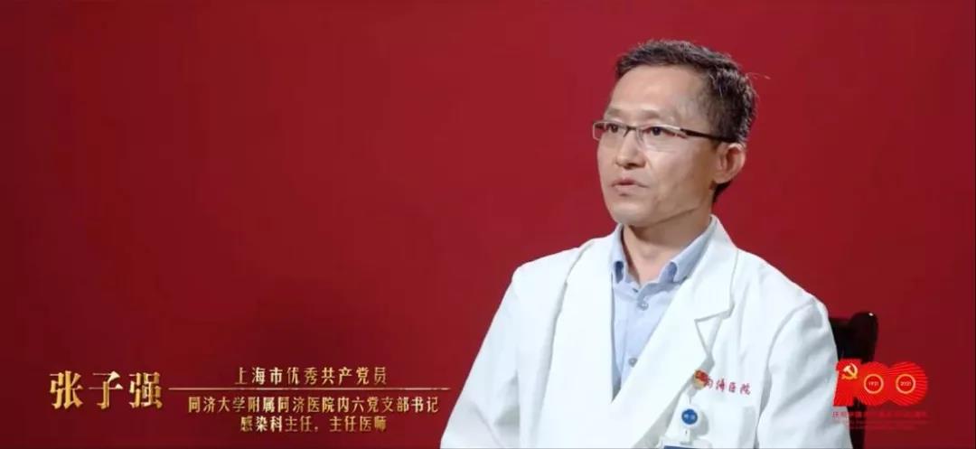 上海市优秀共产党员、抗击新冠肺炎疫情先进个人,上海市教卫工作党委系统优秀共产党员,同济大学优秀共产党员、优秀共产党员·医德标兵,附属同济医院内六党支部书记、感染科主任、主任医师张子强说:“新冠肺炎疫情发生后,我两个多月在上海市公共卫生临床中心的新冠肺炎重症病区参与临床一线支援抗疫工作。套着厚厚的防护服,每天要看顾5到7位重症患者,包括1到2位危重型患者。每天24小时吃住在重症病区范围内。现在回想那段时间,觉得特别珍贵,感到充实。我是一名呼吸与危重症医学科的医生,我更是一名共产党员!冲锋在前,毫不犹豫。”