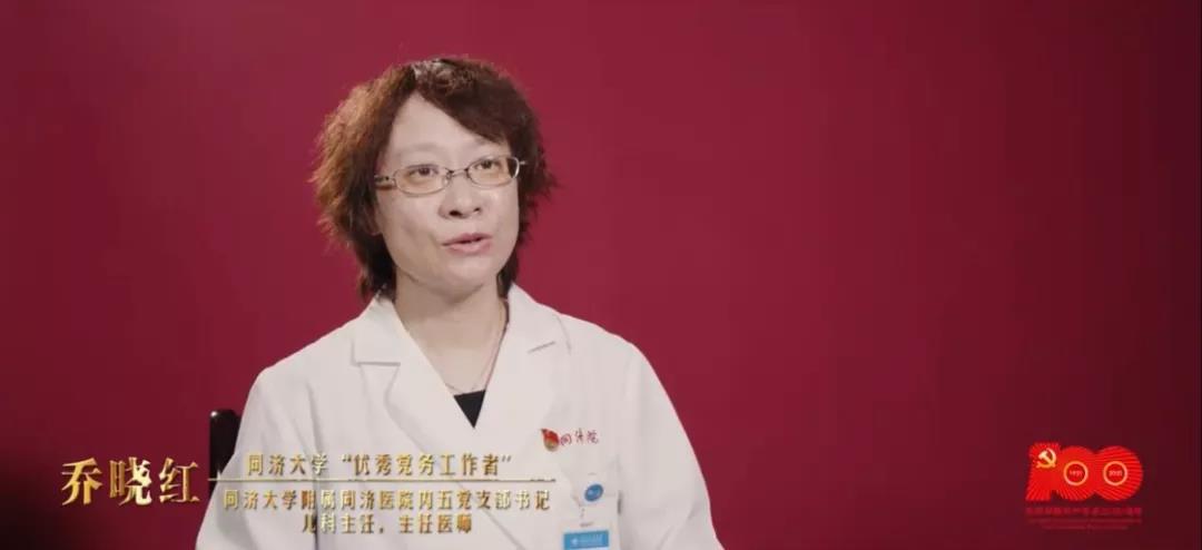 同济大学优秀党务工作者,附属同济医院内五党支部书记、儿科主任、主任医师乔晓红:“这些年,我一直在关注白血病患儿诊治工作,我觉得我们关心的不仅是患儿本身,更是在关心一个家庭,这是一份社会责任。我希望把更多的温暖投放到这群家庭上,帮助他人,阳光自己,我设想是带领更多的党员群众参与到关爱白血病患儿的社会实践中。”