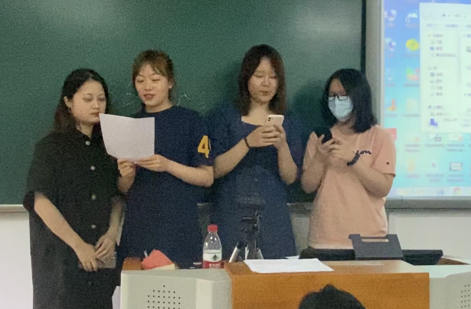 作为一个作业项目,2019级英语专业1班和2班的学生分组在课后进行翻译,教师反馈修改意见,同学们进行完善后在课堂进行演唱。在中国共产党百年华诞之际,董琇教授带领2019级英语2班同学进行集体演唱,歌唱党,歌唱祖国,抒发红色激情,传承红色基因,从红色歌曲中汲取奋进的力量。鉴于同学们对红色歌曲的“翻唱”表现出了浓厚的兴趣,教师将在下学期的翻译课程中对中文歌曲的外译进一步展开讲解和训练。