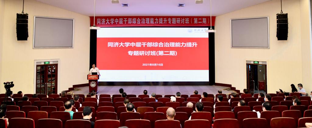 8月16日上午,为期一周的同济大学中层干部综合治理能力提升专题研讨班(第二期)开班。校党委书记方守恩、校长陈杰等全体校领导出席开班仪式并参加培训会,陈杰作开班报告。此次专题研讨班将培训对象从处级干部扩大到科级干部和部分青年教师,一共有970余人参加培训。研讨班的主会场设在逸夫楼报告厅,在四平路校区32个智慧教室、嘉定校区2个智慧教室设分会场。