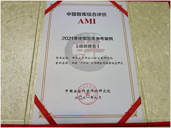 同济大学国家创新发展研究院、国家现代化研究院2项研究成果入选2021年中国智库参考案例