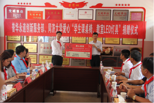“点点灯光,点亮校园,点亮未来”。上海爱心企业普华永道创新服务部和同济大学向宝丰完小捐助LED护眼灯70套;上海普宏建筑有限公司、同济大学向宝丰中学捐赠LED护眼灯150套;东原集团向白石中学捐赠LED护眼灯152套;中建四局三公司向诺邓镇九年制学校捐赠LED护眼灯300套;中建四局五公司向云龙民族中学捐赠LED护眼灯200套。