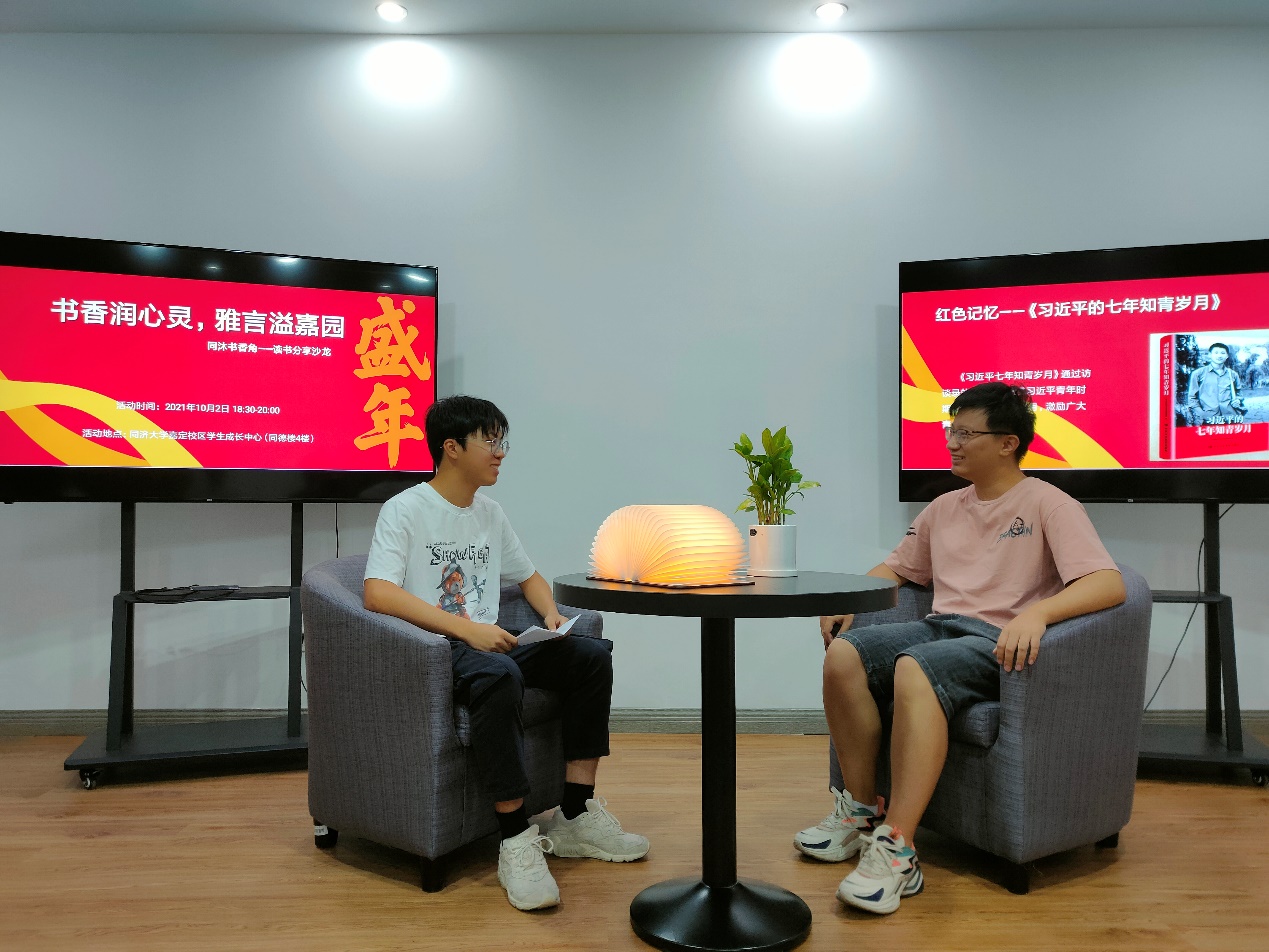在“同沐书香角”读书分享沙龙,学生们聆听文化讲座,一同捧卷而读。