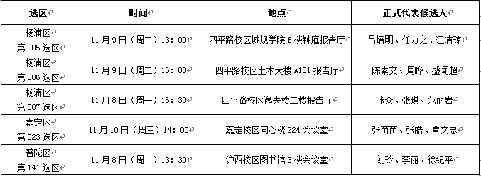 自9月2日区人大代表换届选举工作启动以来,同济大学各选区在全体选民的积极配合下,已按要求顺利完成选民登记、代表候选人推荐及协商工作。