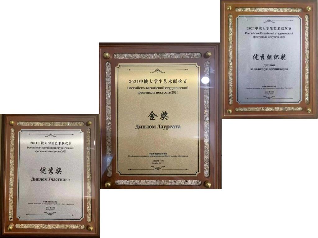 正值《中俄睦邻友好合作条约》签署20周年之际,在中国教育部和俄罗斯联邦科学与高等教育部的指导下,由中国教育国际交流协会与俄罗斯圣彼得堡国立经济大学联合主办的2021中俄大学生艺术联欢节在北京、长春、莫斯科、圣彼得堡四地同步举行。由中方35所高校和俄方55所高校选送的199个文艺节目参演了此次活动。我校艺术中心推荐的3个作品脱颖而出,其中学生民乐团作品《楼兰意象》、学生舞蹈团作品《终将见我微笑》获“2021中俄大学生艺术联欢节金奖”,学生合唱团作品《蜀道难》获“2021中俄大学生艺术联欢节优秀奖”,同济大学获“2021中俄大学生艺术联欢节优秀组织奖”。