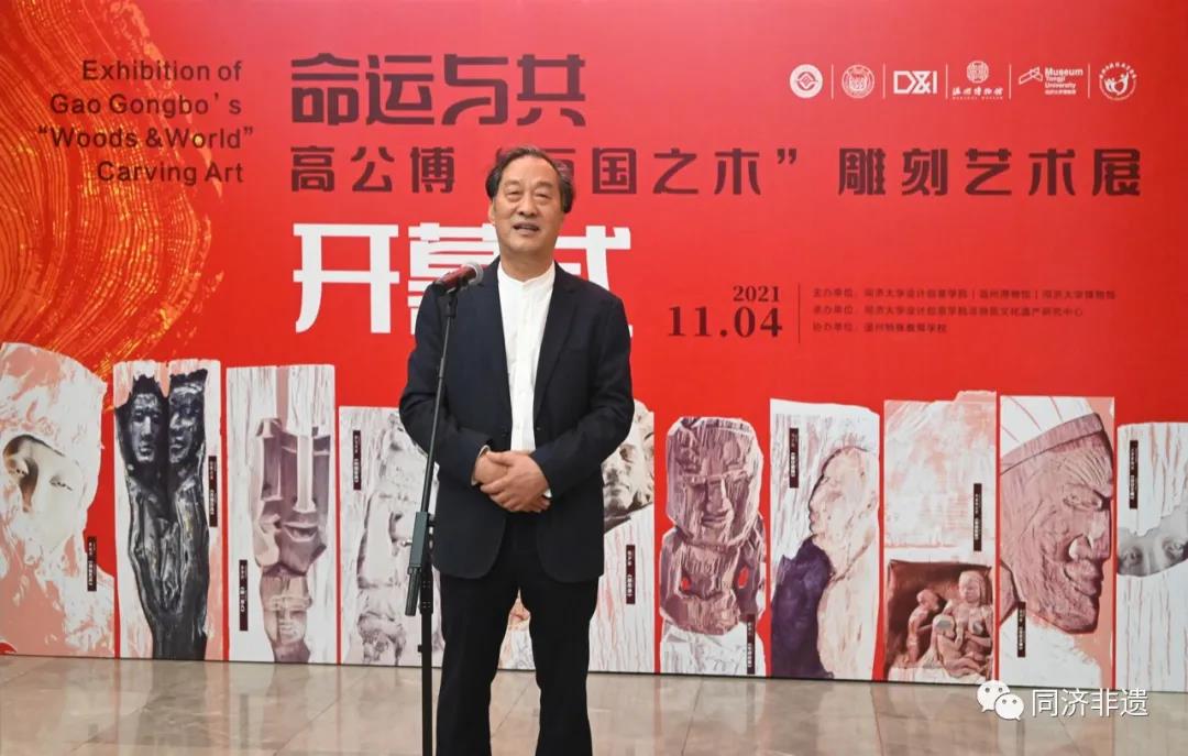 11月4日,“命运与共——高公博‘百国之木’雕刻艺术展”在校博物馆开幕。展览由同济大学设计创意学院、温州博物馆、同济大学博物馆主办,同济大学设计创意学院非物质文化遗产研究中心承办,温州特殊教育学校协办。上海市文化和旅游局非遗处、同济大学设计创意学院、温州博物馆、上海华东理工学院、温州特殊教育学校、上海市嘉定博物馆、上海工艺美术馆相关负责人出席开幕式。