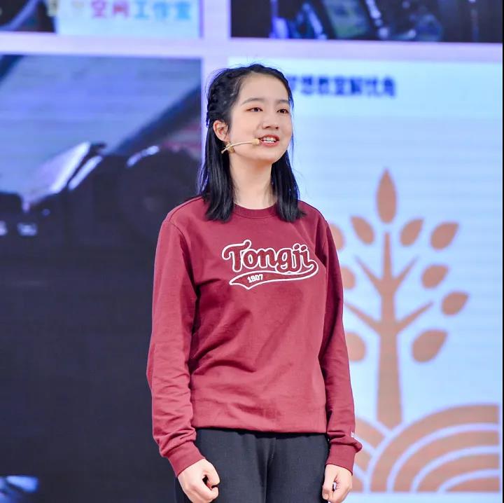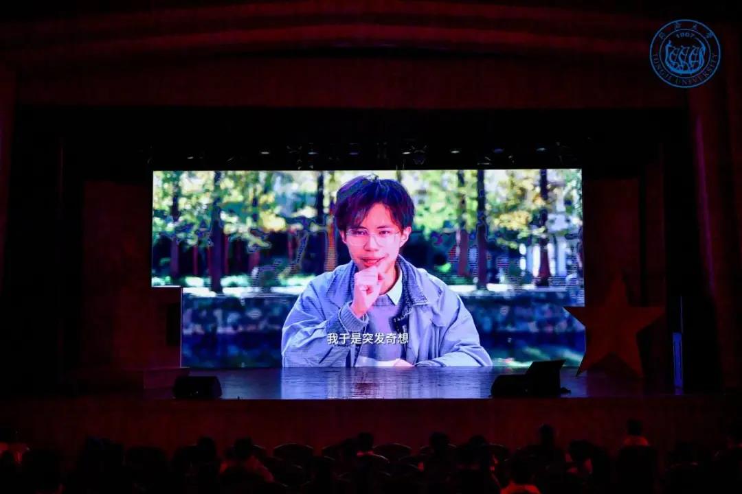 报告会现场,嘉宾主持、用镜头讲好同济故事的新生网络达人——2020级设计创意学院本科生林慈丰以短视频的形式回顾了自己的大学生活,并带领大家走进几位优秀大学生代表。