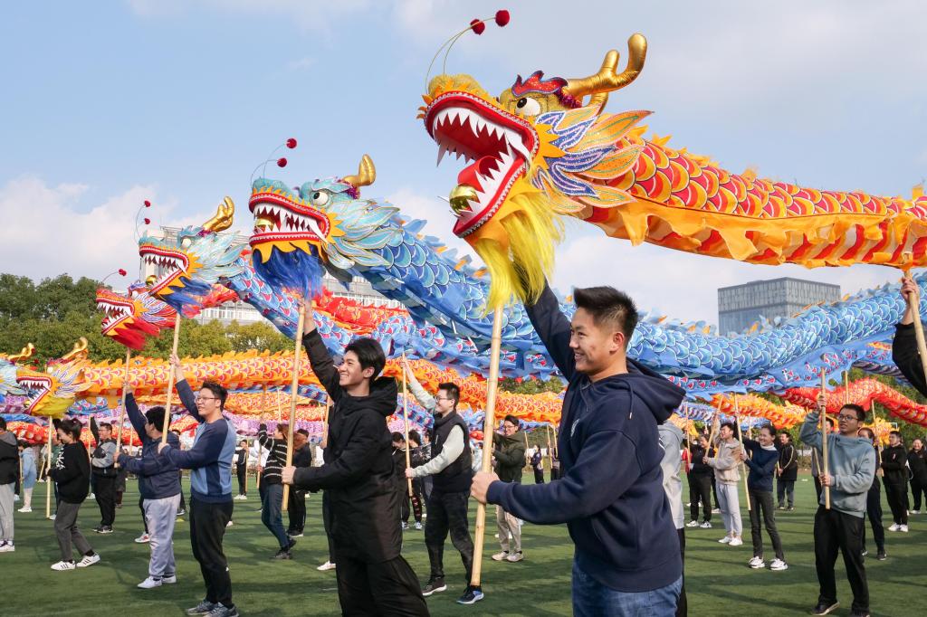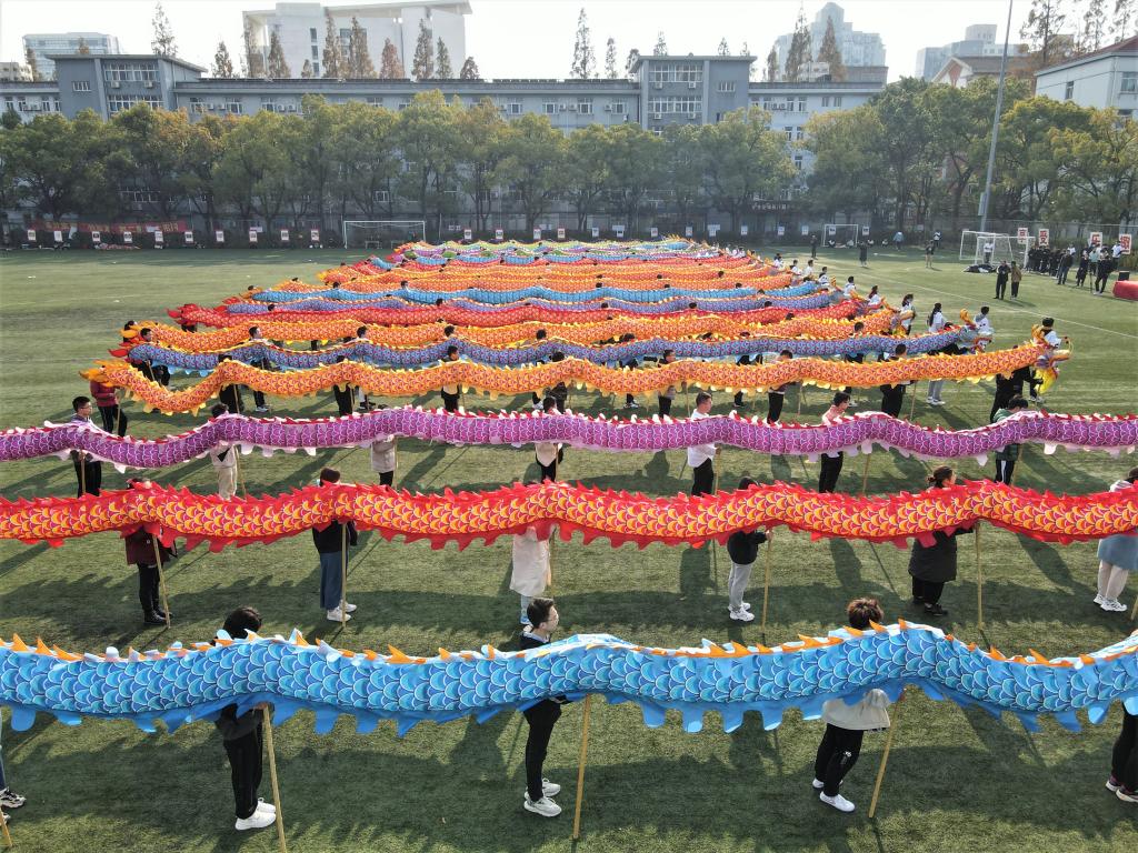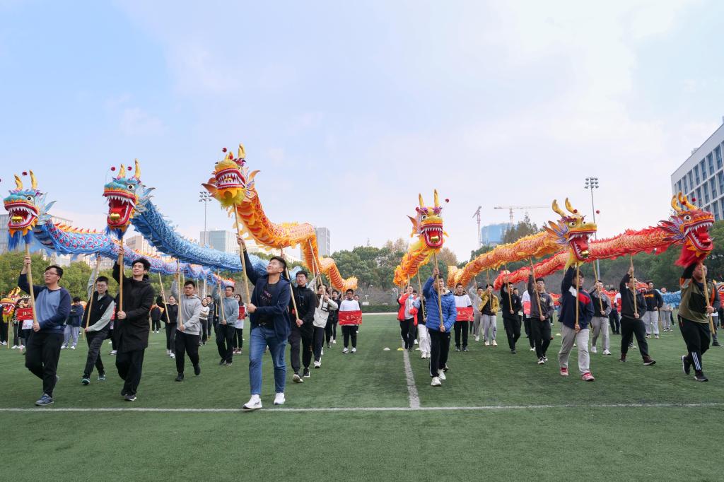 26条长龙迎风起舞,学校举办第二届“友谊杯”舞龙比赛