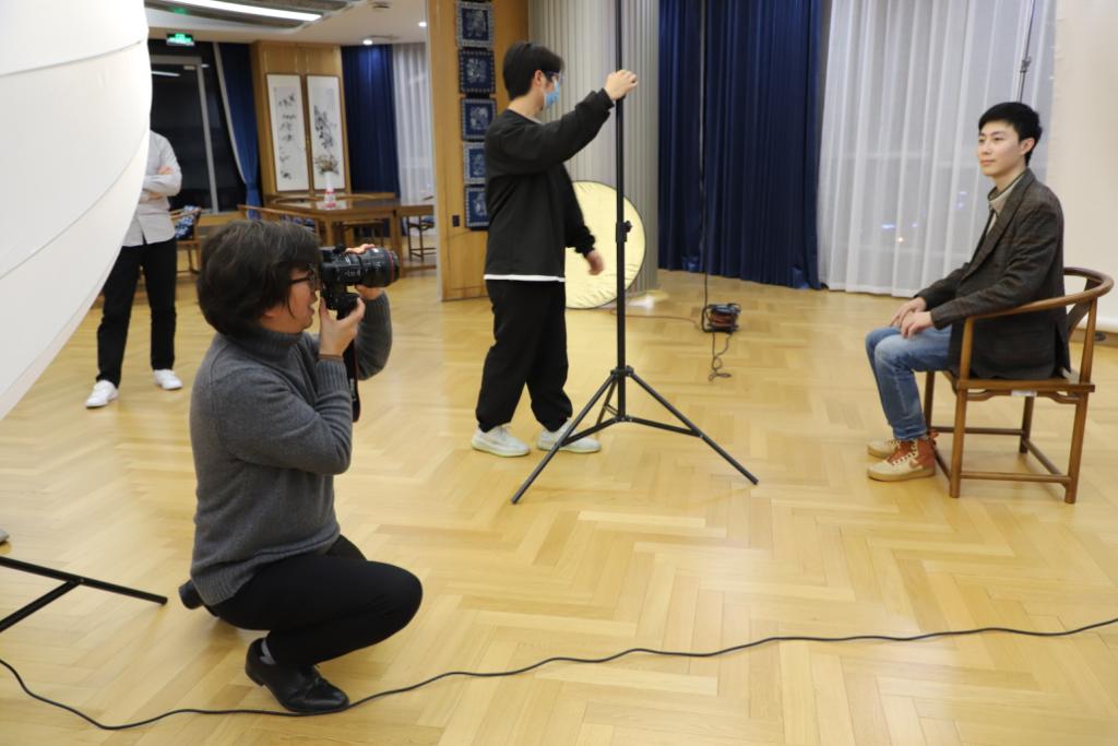 讲座现场还设置了人像摄影布景,林旭峰围绕拍摄的取景、光线处理、拍摄位置选择、拍摄技巧等进行示范,并为同学们摄影留念。