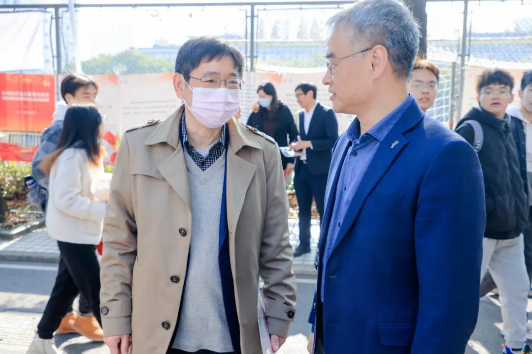 在四平路校区南大道,吴广明、彭震伟等先后来到活动现场,饶有兴趣地学习宪法知识与相关案件,并与学生亲切互动,勉励在场师生要学深悟透习近平法治思想和宪法精神,开展好常态化普法宣传。