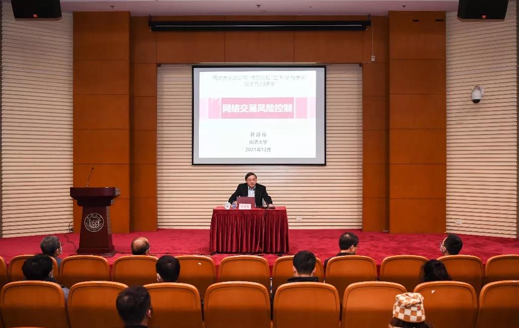 12月24日下午,上海市科学道德和学风建设宣传月系列活动、同济大学博思论坛“科学与未来”院士系列讲堂第二讲依托高等讲堂平台在嘉定校区举行。此次讲堂由电子与信息工程学院承办,邀请新当选中国工程院院士、电子与信息工程学院蒋昌俊教授作“网络交易风险控制”主题报告。校党委副书记彭震伟出席活动并致辞。
