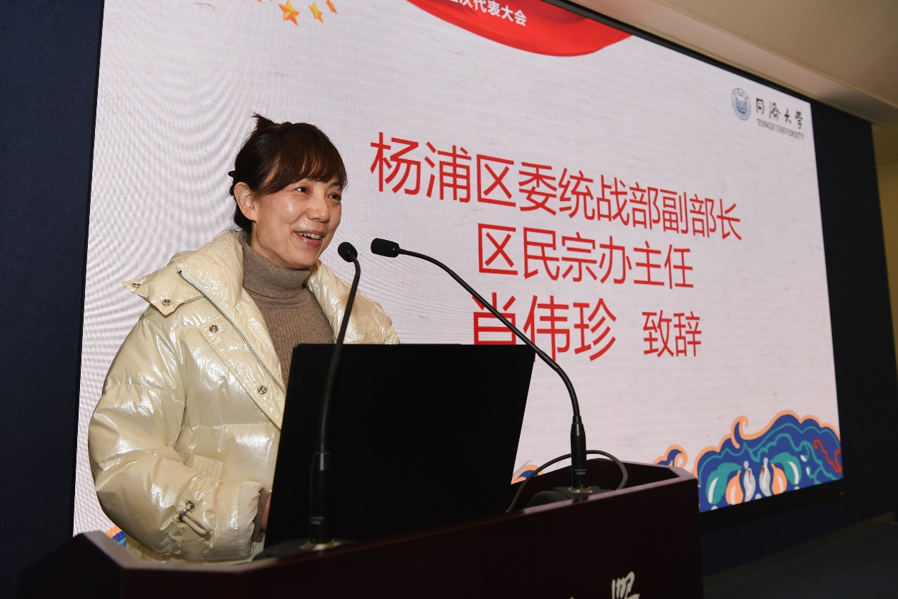 肖伟珍代表杨浦区委统战部、区民族宗教办向大会的召开表示祝贺。她表示,同济大学为杨浦区三区联动和民族工作贡献了力量,希望未来携手以铸牢中华民族共同体意识为主线,共同努力、同舟共济,共绘多彩同心圆,营造民族团结一家亲的浓厚氛围。