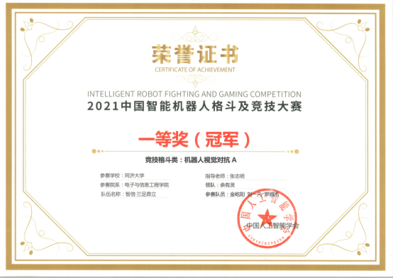 由中国高等教育学会主办的中国高校智能机器人创意大赛主题三,采用初赛、决赛赛制,来自同济大学、西安交通大学、华中科技大学、北京航空航天大学、北京理工大学等高校的队伍报名参赛。决赛阶段共评选出国赛获奖作品239件。其中,由我校电子与信息工程学院全国大学生智能车竞赛实验室组织,教师张志明和余有灵指导,张登煌、胡蓬、李昊霖3名学生组成的“钢铁洪流”队,获得统一部件组仿人格斗组一等奖(亚军),俞书彬、张雨、张梓瀚、朱睿潇4名学生组成的“济勤”队,获得视觉对抗A组一等奖。该项赛事已列入《全国普通高校学科竞赛排行榜》,旨在积极推进高校学生创新意识和创造能力培养,激励广大学生踊跃参加课外科技实践,有效推动新工科人才培养。