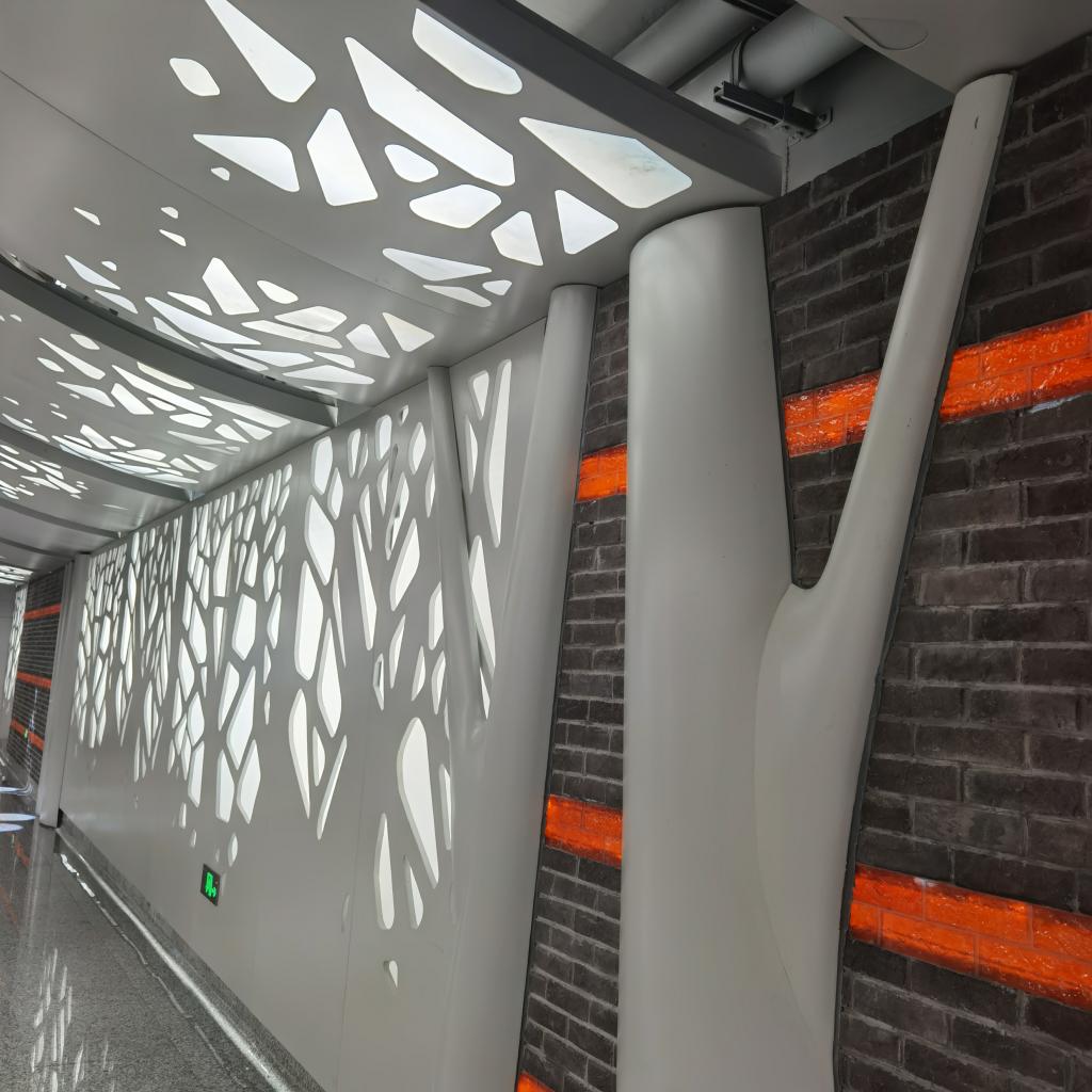传统的地铁车站建设按照工序,土建施工、机电安装、装修施工、艺术品布置等一个一个接续“数萝卜”,各干各的、互不顾盼,结果造成本就逼仄的地下空间被机电管网等无序占用,空间功能、结构藤蔓野蛮生长,高度未得到充分利用,空间布局乱象横生。最后进场的空间艺术营造就变成了“就汤下面”、表面文章了,外行一看挺热闹,内行细看不入“道”,贴上去的,自然不能“自然而然”成为一个美由内生,向外衍发的“生命体”,只能是“感觉在森林”。