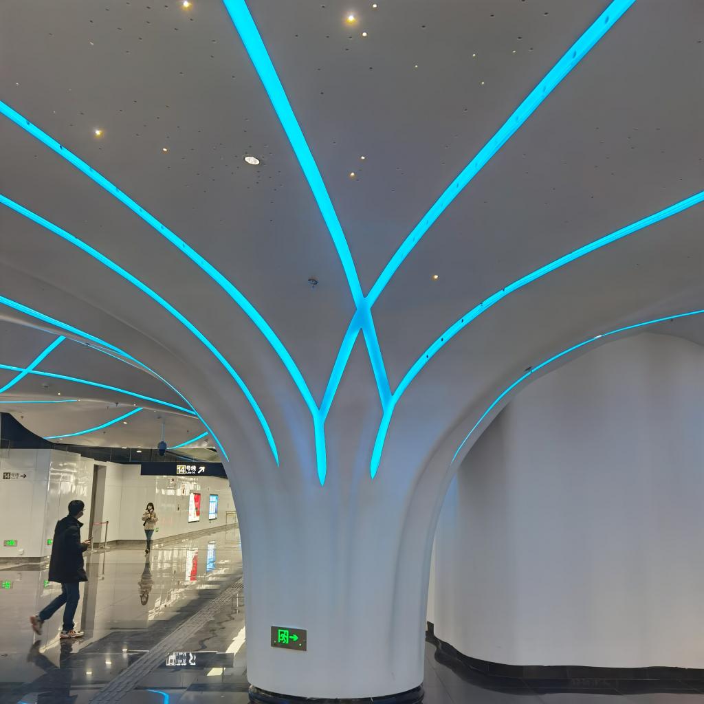 于是,立柱变成了树,各种管线收纳进去,五彩的光从“树”中漫射出去,红的、紫的、蓝的、白的、浅红的、橙黄的……郑鸣说,建议您驻足几分钟,看一会儿,劳累一天的你很快就会“浴美重生”。这处地铁空间,现在已成市民的热门打卡地。