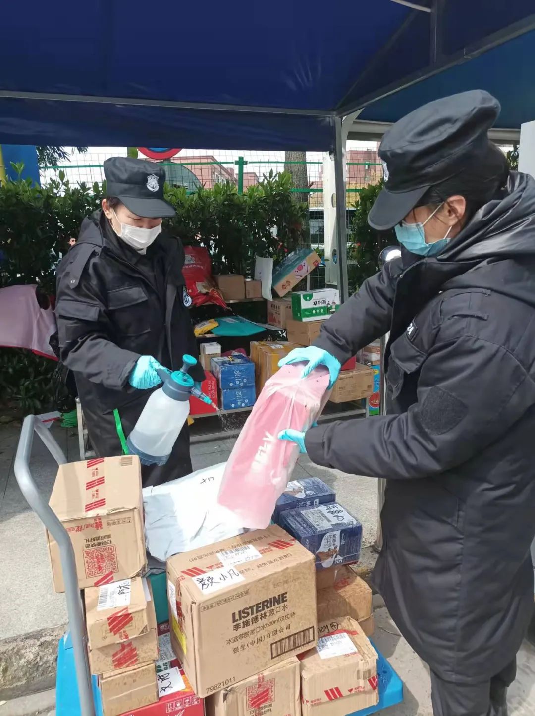 沪西校卫队的女队员们在班长钟文娟的带领下主动要求进驻校大门、桃浦西路1号门防控一线,要向“大白”们学习,她们说:“谁说女子不如男,铿锵玫瑰,春日绽放。”她们每天身穿隔离服,头戴防护面罩,背着几十斤重的药水桶一次又一次的为送物资车辆、物品进行严格的消杀,有的司机觉得她们消杀得太久有所抱怨,但是她们严守底线,因为她们知道这是沪西校区的生命线,容不得半点疏忽,就这么7位女同志,年龄最小的20出头,年龄最大的50多岁,从3月13日开始离开小家,克服心理、生理等各种困难严格坚守岗位、坚守底线,默默坚持到现在。