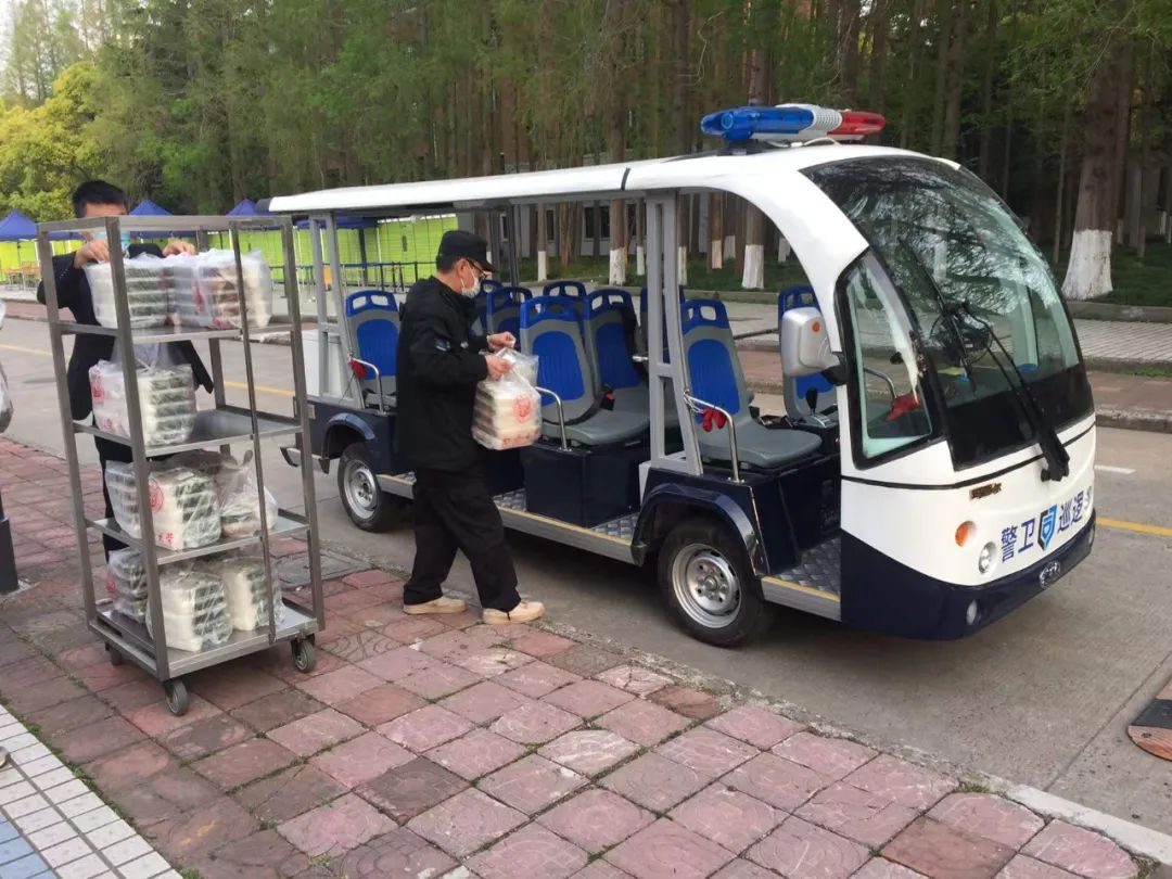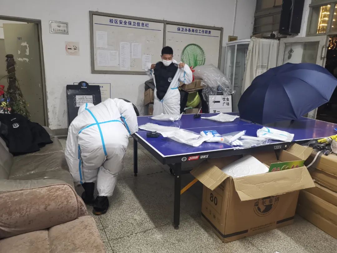 沪西校区准封闭管理以来,校卫队的男队员们任务就更重了,在大班长江增建、班长徐正成、陈建军的带领下,队员们除了附属天佑医院通道值守、校区物资转运、学生一日三餐运送、巡视校园长达几公里的围墙、转运进沪西健康观察人员、核酸检测现场维护外,还要承担校区突发情况的应急处置,变得更辛苦了。许多队员下了夜班不休息连续工作,休息的队员还主动承担志愿者的工作。