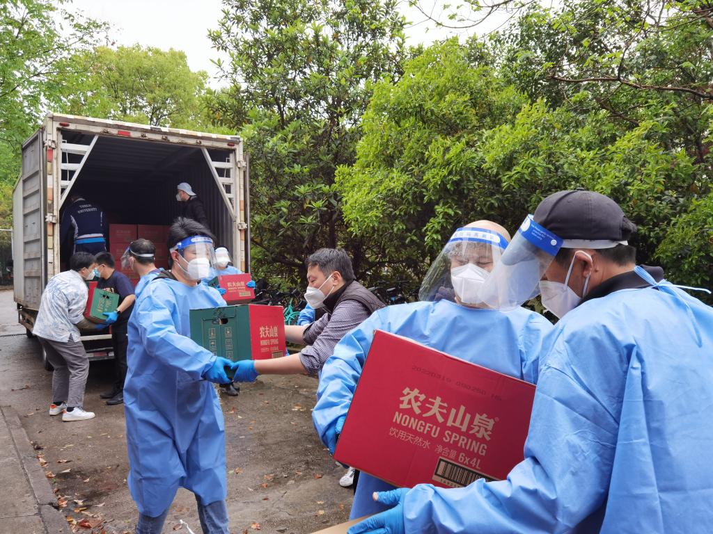 近日,随着学校调配和获赠的防疫和生活物资进入嘉定校区,在学校疫情防控领导小组和嘉定校区疫情防控专班的领导下,组建了一支物资配送突击队,将物资送达师生手中。队伍由校体育教学部、国际足球学院相关教职工及部分嘉定校区院系辅导员组成。自4月11日中午至今,这支队伍已向学生社区配送水果26吨、矿泉水15吨和其他物资若干。