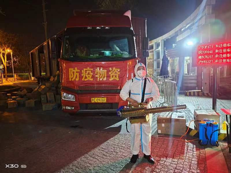 值得一提的是,一批批物资进校后,从早到晚,从南门到北门,嘉定校区保卫办组织力量,在校门口对车辆轮胎、车身、货仓等部位严格消杀,静置一段时间后开始组织卸货。在校区物资配送突击队组建前,保卫处会同基建处、资产处协同作战,全力以赴做好车辆和物资消杀、接收、转运工作。大家都是召之即来,来之能战,为守护校园平安尽自己的力量。