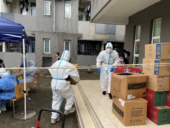 在社区,广大教师党员舍小家为大家,积极参与社区志愿服务。退休党员张伟瑾不顾年已古稀,担任社区小组的线上联络员,负责发布社区各项通知并开展组织工作,分发抗原试剂。张林教授化身“搬运工”“统计员”,参与社区生活保障物资的装卸、分拣与发放工作,同时将志愿服务的故事带入课堂,以身示范,为广大学生弘扬正能量。杨丹老师不顾所在社区疫情严重、风险大,第一时间向社区报到,同时动员家属共同参与。李冰、周微微、高珍、王彩霞、严海洲、罗烨、韩丰夏……从小区核酸检测的秩序维护,到抗原试剂的发放回收,从保障物资的运送发放,到社区困难家庭的帮扶资助,处处都有他们忙碌的身影。